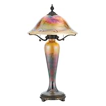 Quoizel Lamps - Table/Floor - From the Salamander Glass Studio Collection this distinctive signed one-of-a-kind collectible features a handblown art glass shade and base created by a skilled artisan. The metallic elements have an aged brass finish.25 H 14 D